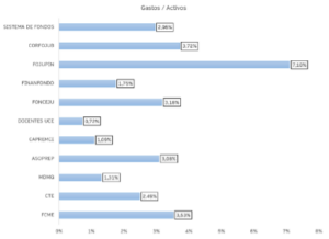 En cuanto al comportamiento relativo del gasto total con relación al total del activo administrado; CAPREMCI mantiene una relación de gasto de USD 1,09 por cada USD 100 de activos totales, lo que implica el segundo mejor desempeño respecto a sus pares y uno mucho mejor respecto al promedio de todos los entes previsionales del Ecuador, considerando que el total del sistema mantuvo una relación de 2,96%: